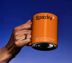 The merchandise set applies the Sparky* identity consistently across physical items, with clear typography, high-contrast color choices, and controlled logo placement. The mug and tote follow the same layout rules, which keeps the brand presentation uniform across different materials and mockup contexts.